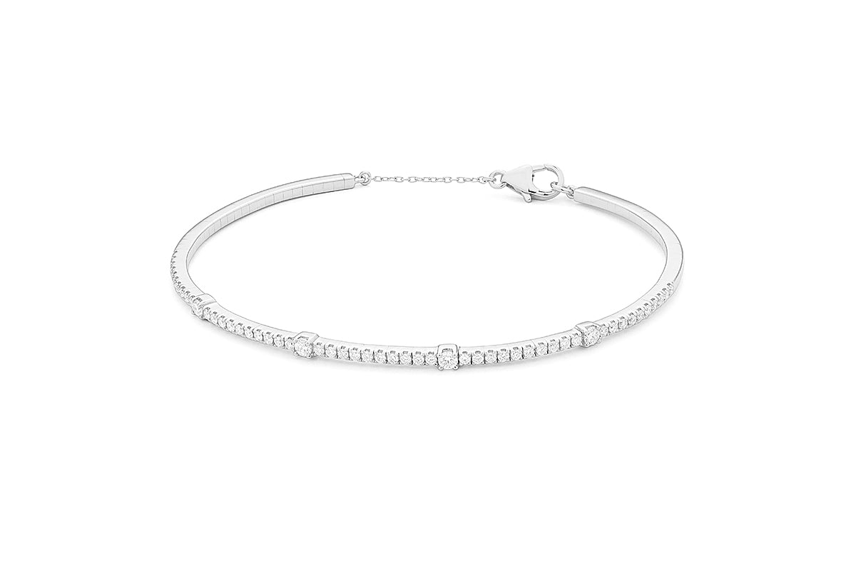 14K White Gold 6 1/2 Inches Stations Bangle 0.65 Ctw H SI Diamond
