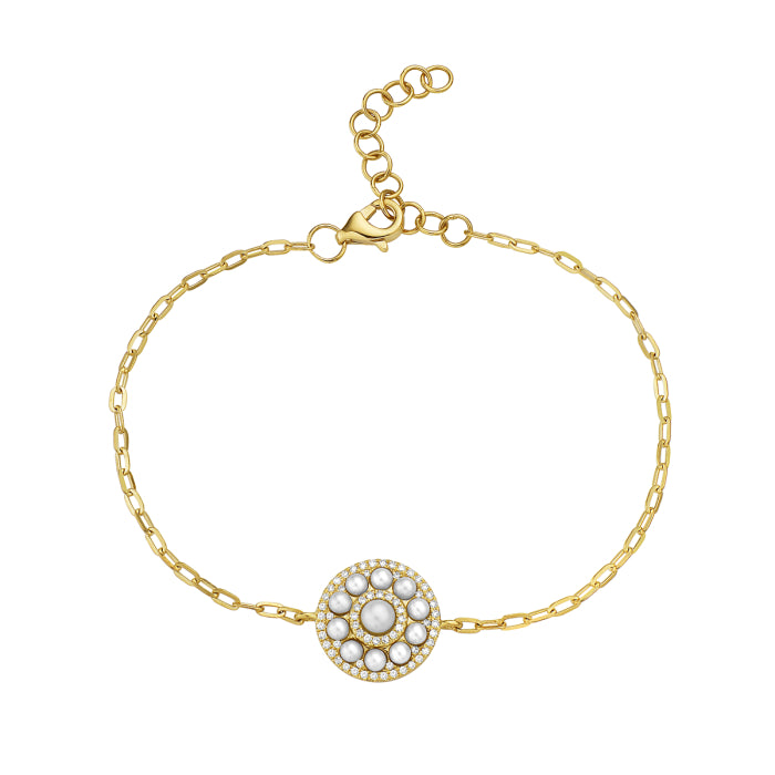 Make mother or yourself happy this Mother's Day with this stunning piece crafted from 14 karat gold and a stunning collection of pearls. Delicately beautiful, this lovely bracelet is one to be cherished now and for years to come.