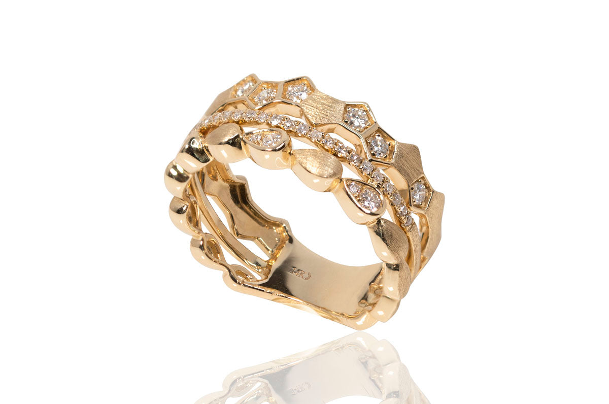 Contemporary 14K Satin Finish Yellow Gold Triple Band Diamond Ring