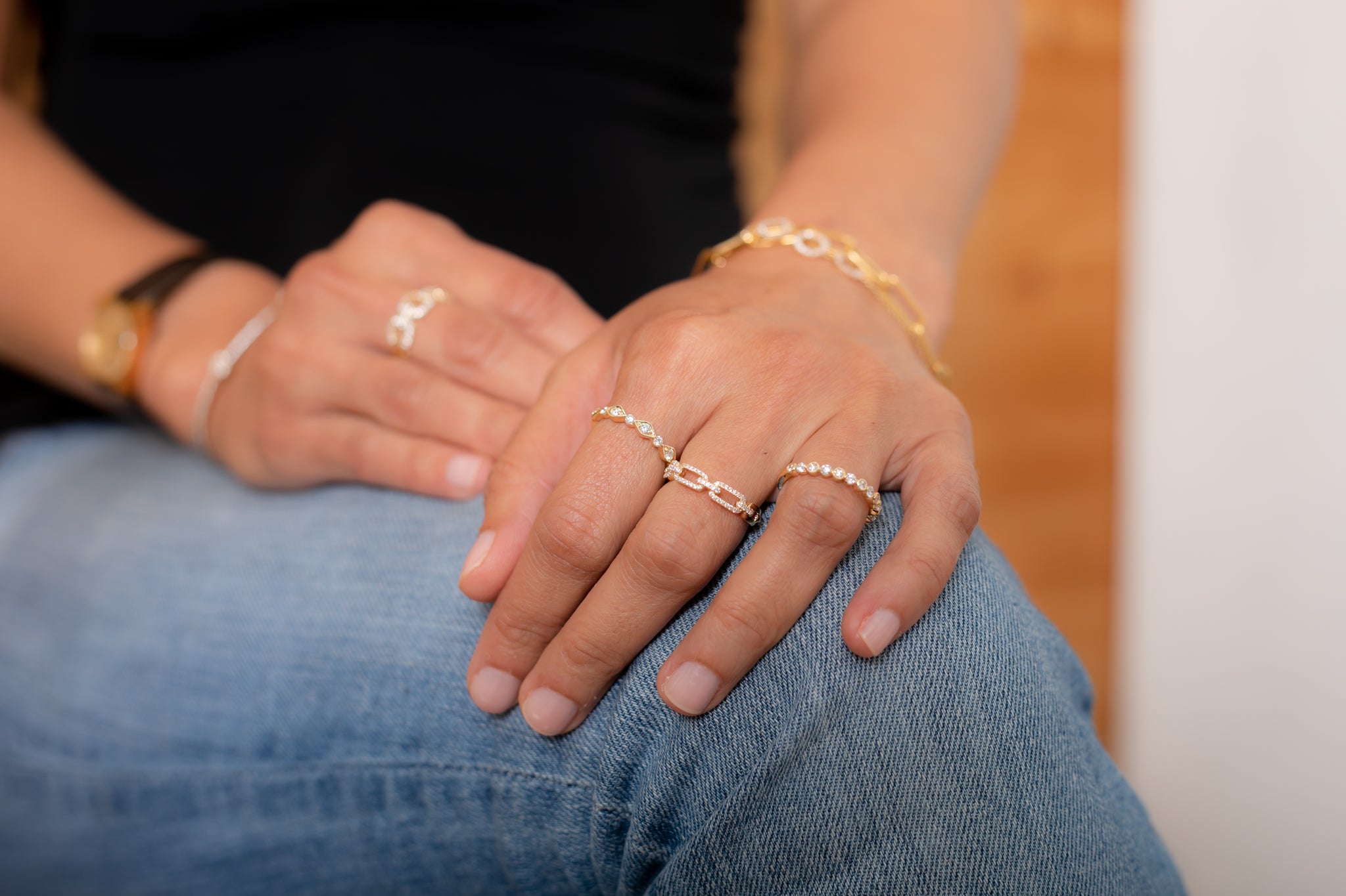 This sparkling 14k yellow gold diamond band has a total of 68 stones. There are round diamonds with a total weight of 0.21ct set in a micro prong setting. Make this ring part of your signature style.